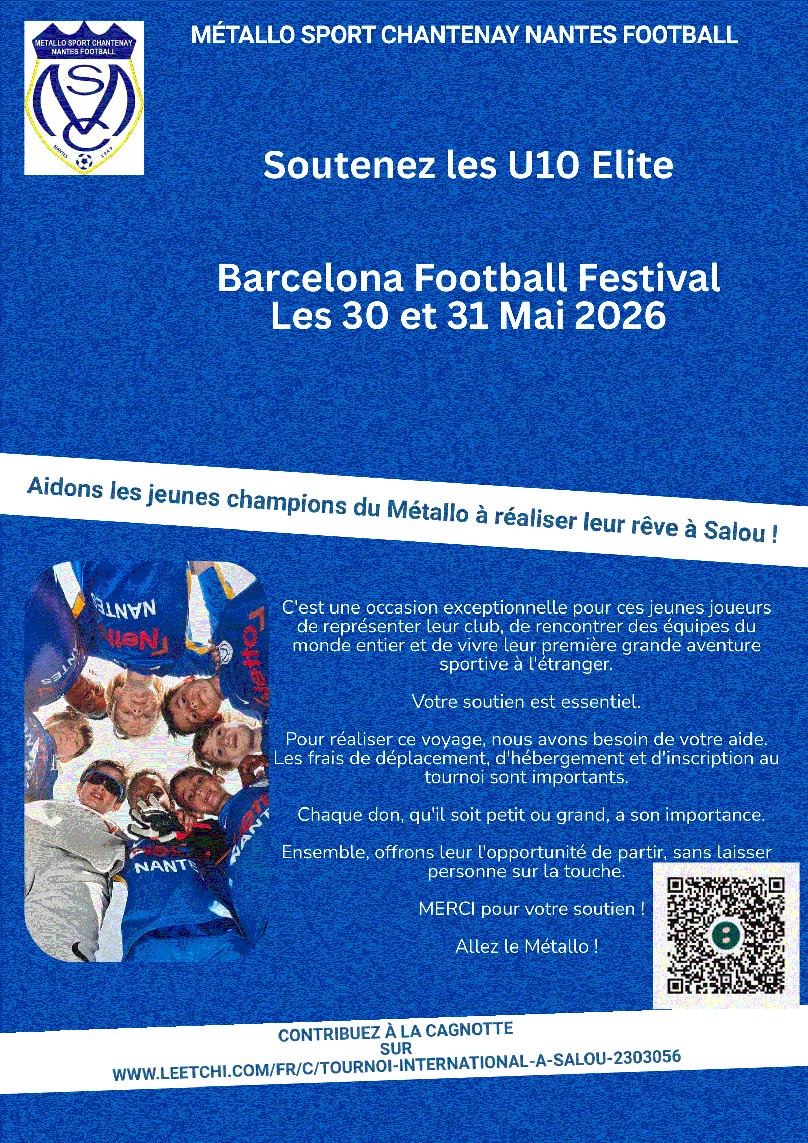 Le Métallo Sport Chantenay Nantes Football est heureux de vous accueillir sur son espace Club.